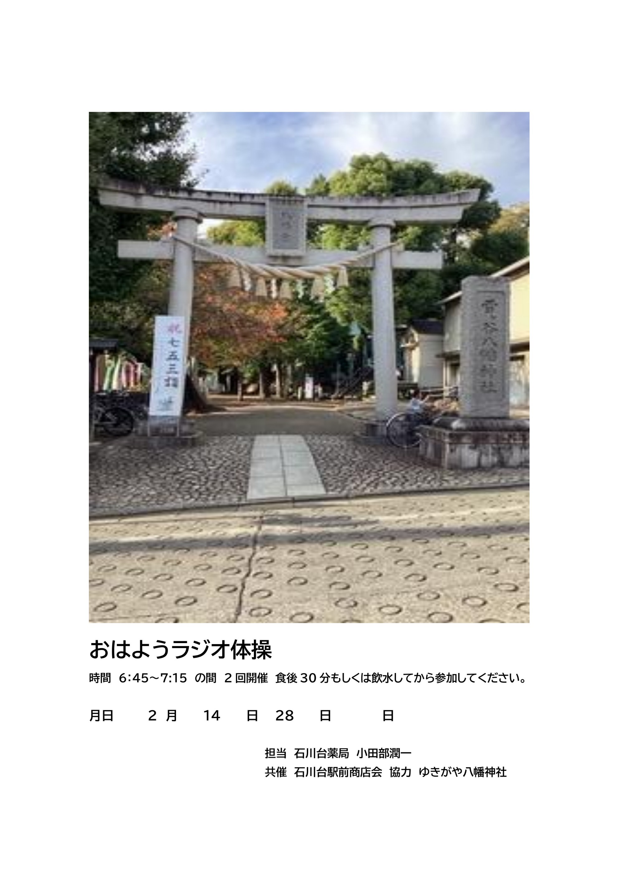 全身を使うため効果はあるようです。日程は薬局の前に掲示してあります。
